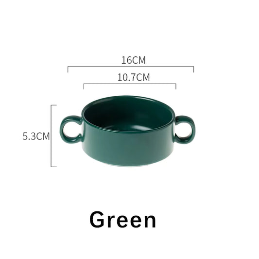 🍲 Dual Handle Porcelain Bowl – 300ml | White, Light Blue, Green