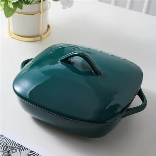 Premium Deep Green Ceramic Baking Dish with Lid-500 ml
