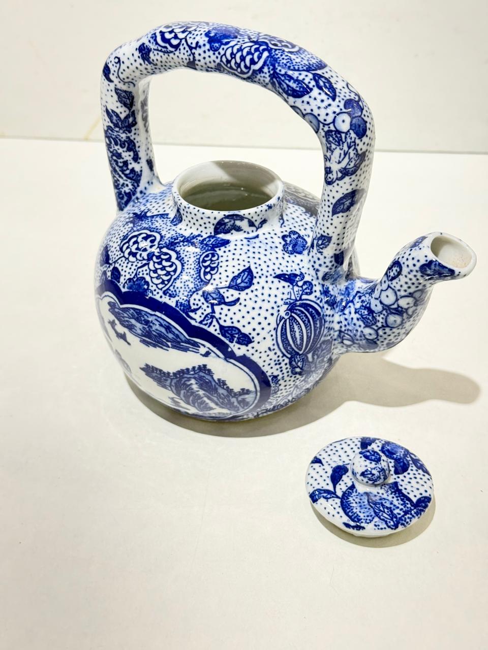 Our handcrafted Blue & White Ceramic Kettle is a nod to timeless Asian artistry with a contemporary flair. Designed with intricate blue floral and scenic motifs on a pristine white porcelain base, this kettle isn’t just functional—it’s an artwork that pours.