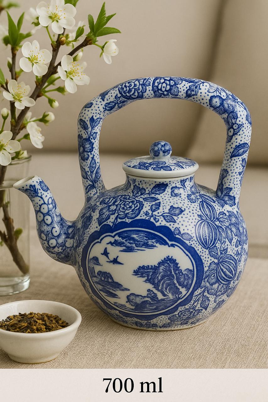 Blue and White Floral Porcelain Tea Pot-700 ML