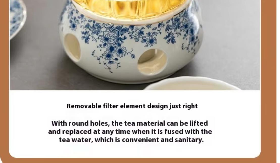This beautifully crafted set includes a 500ml glass teapot paired with a porcelain candle warmer, ensuring your tea stays warm while adding a touch of vintage charm to your table.