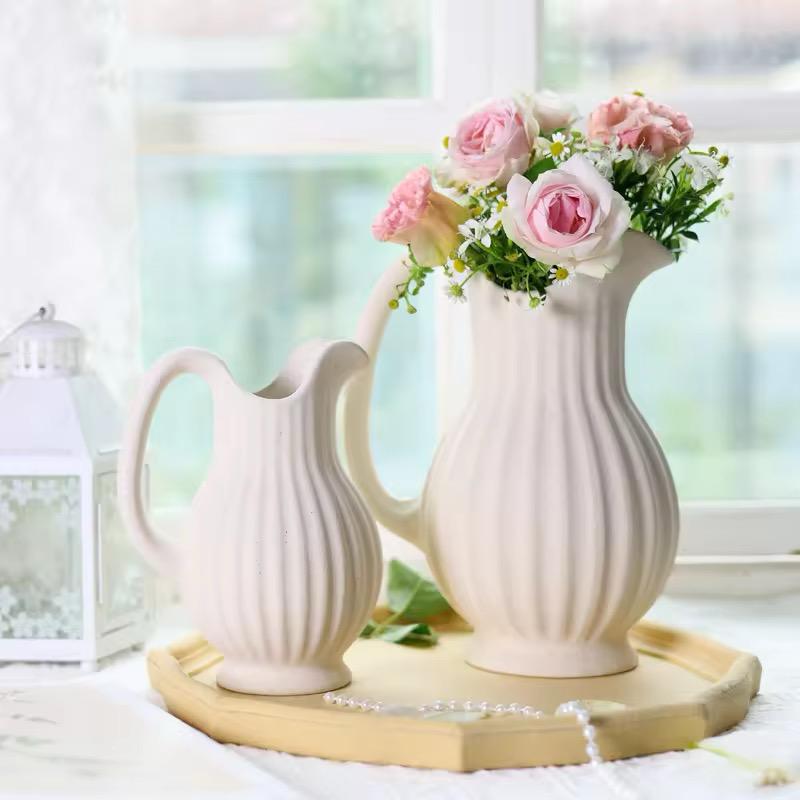 Cream Dream Pitcher Set-Ceramic Floral Vases