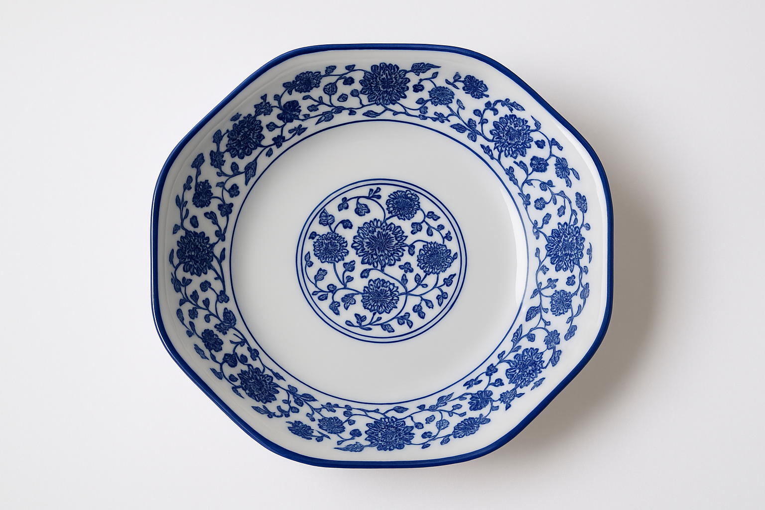 - Color: White base with blue floral detailing