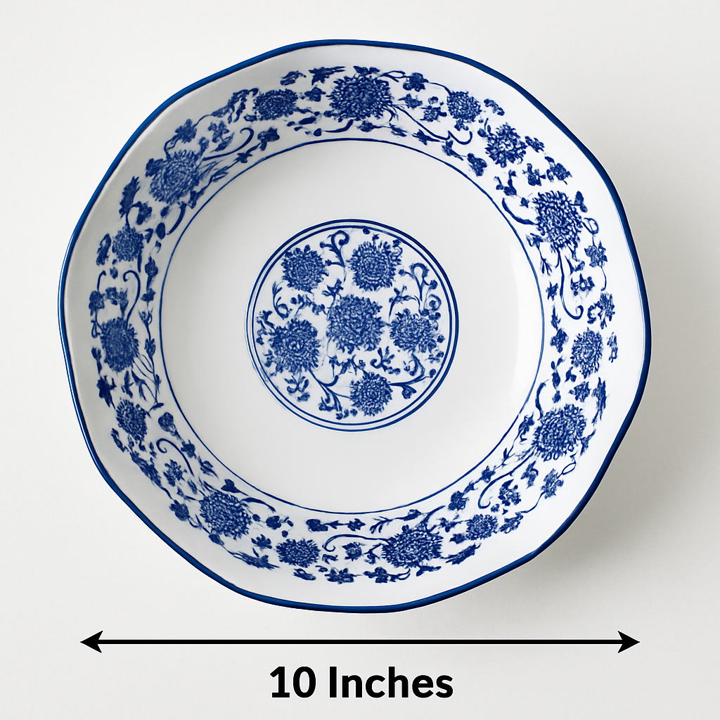 Handcrafted Porcelain Bowl with Blue Bloom Pattern – 10 inches