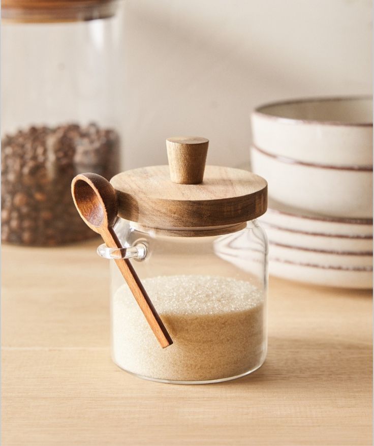 Premium Glass Storage Jar with Wooden Spoon & Lid