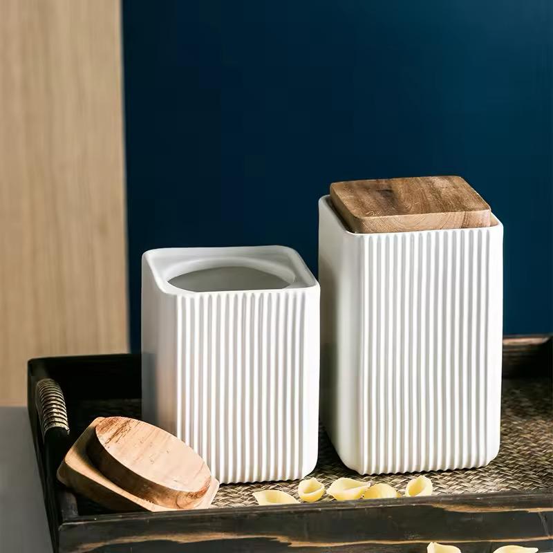 Ribbed Elegance - Airtight Ceramic Kitchen Canister