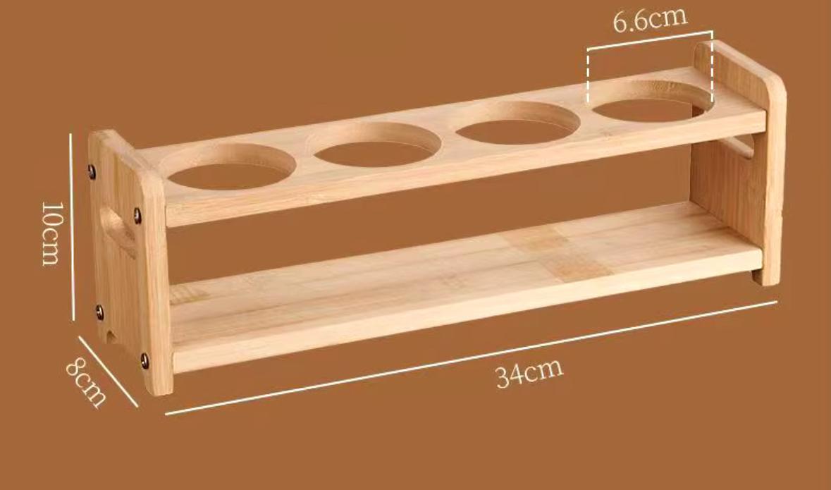 • Custom wooden holder with insets to hold jars in place