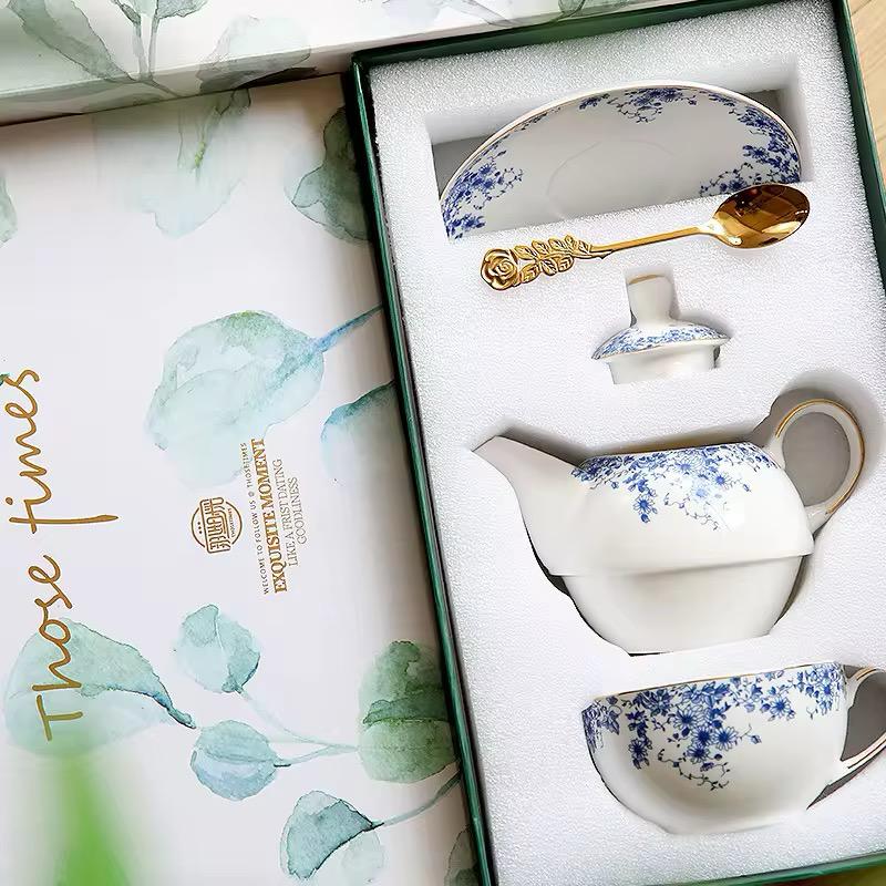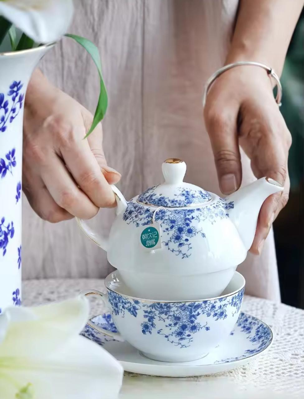Solo Bloom Tea Set- Blue & White Porcelain Gift Set