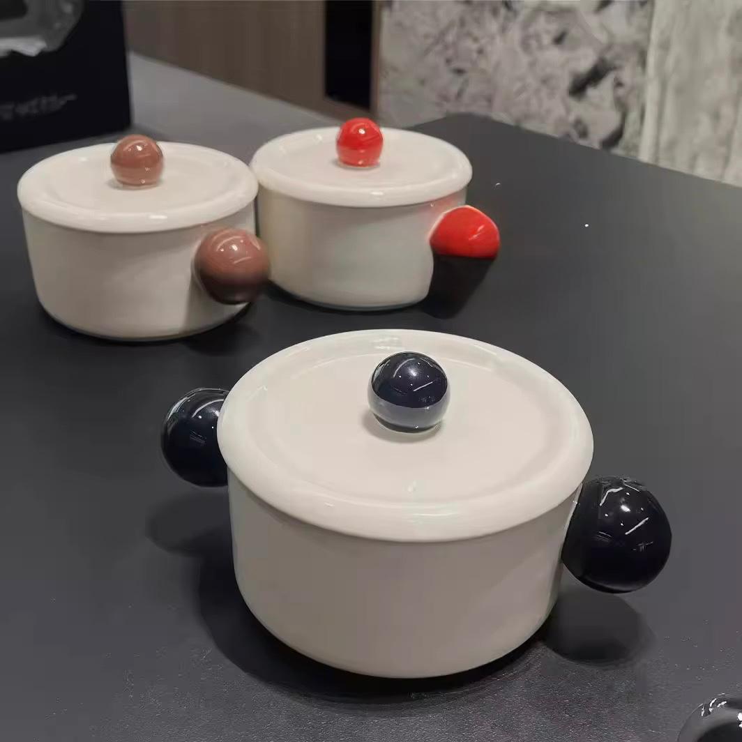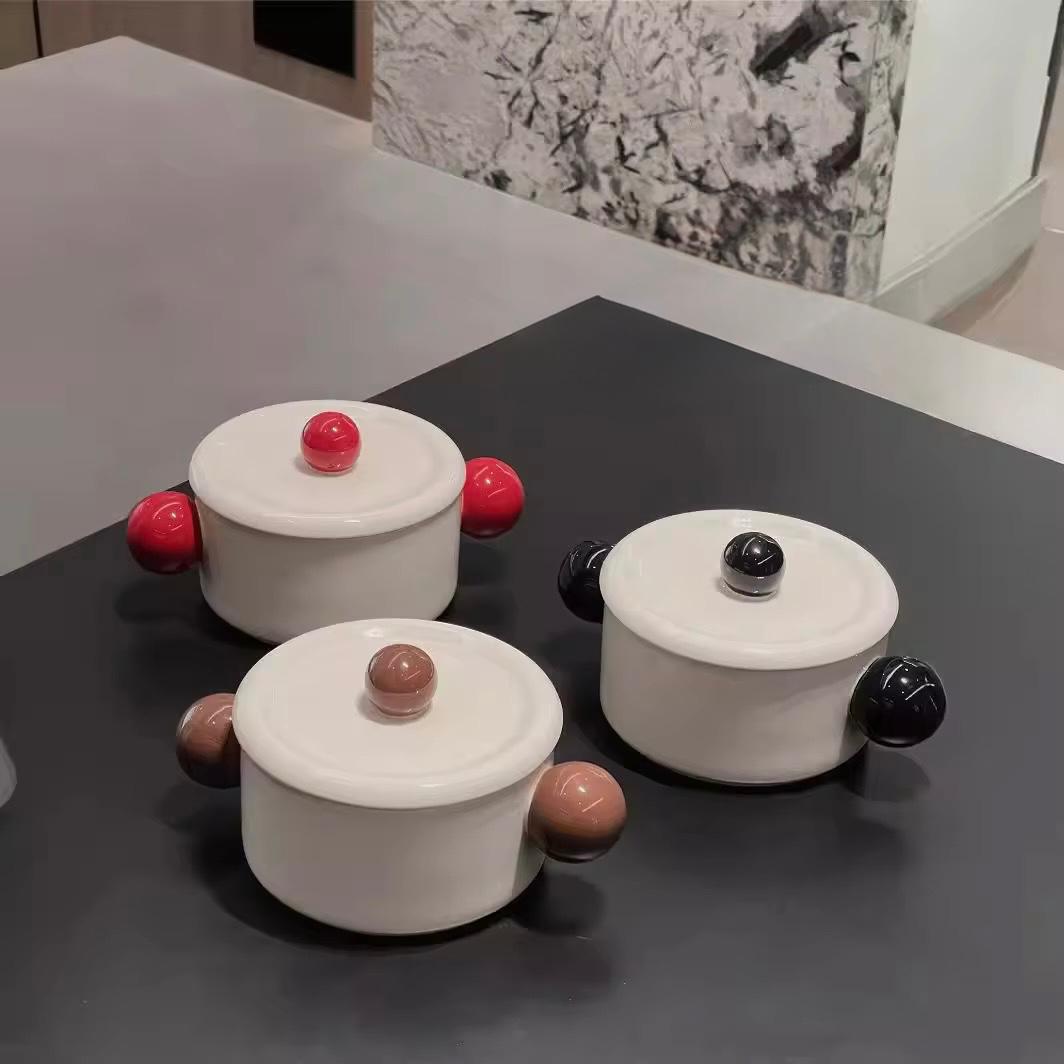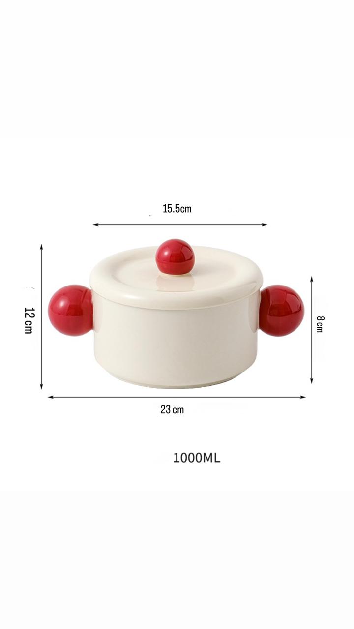 Available in glossy white with bold red, black, or chocolate‑brown spheres, it’s as much a décor piece as it is serveware. Ergonomic side handles stay cool to the touch, making it effortless to carry .