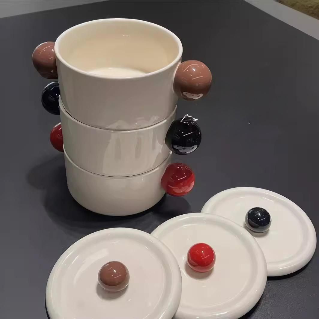 • Handles & Knob: Glazed ceramic spheres (red, black, or brown)