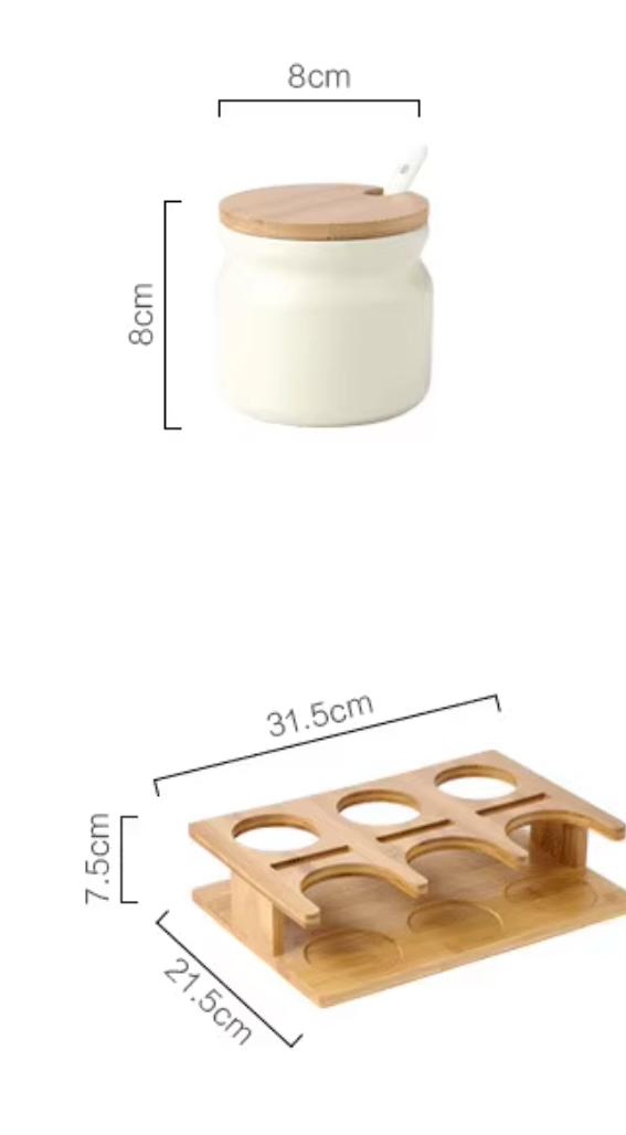 • Spice Jars (8 cm) with wooden lids and spoons to keep your seasonings fresh.
